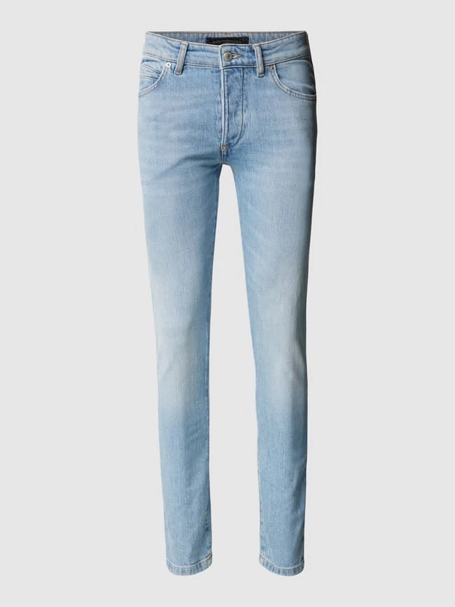 Die Jeans von DRYKORN ist aus einem Baumwoll-Elasthan-Mix gefertigt und kommt im Skinny Fit. Sie zeigt sich im Used-Look mit Label-Patch, Kontrastnähten und Knopfreihe.
